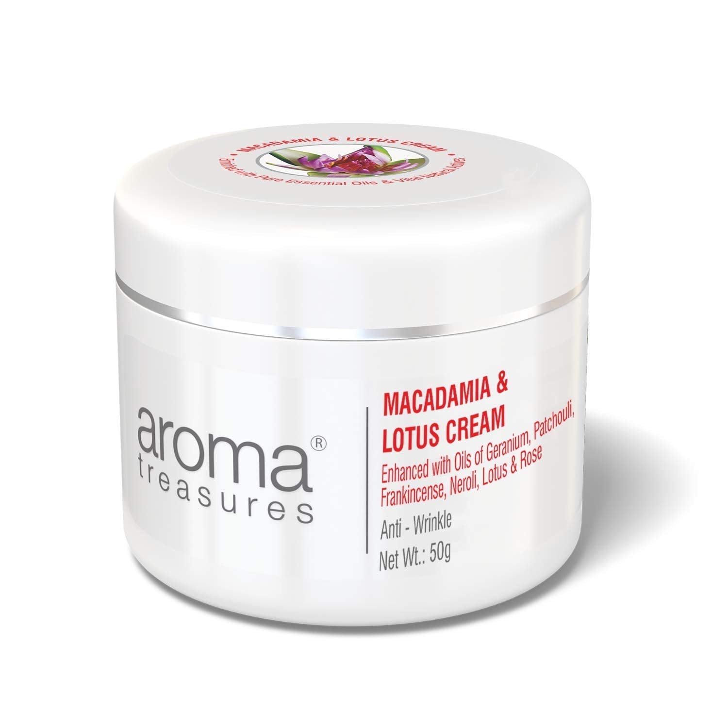 Aroma Treasures Macadamia and Lotus Anti-Wrinkle Cream is a formulation that helps to reduce wrinkles. It works by increasing the tightness of the skin.