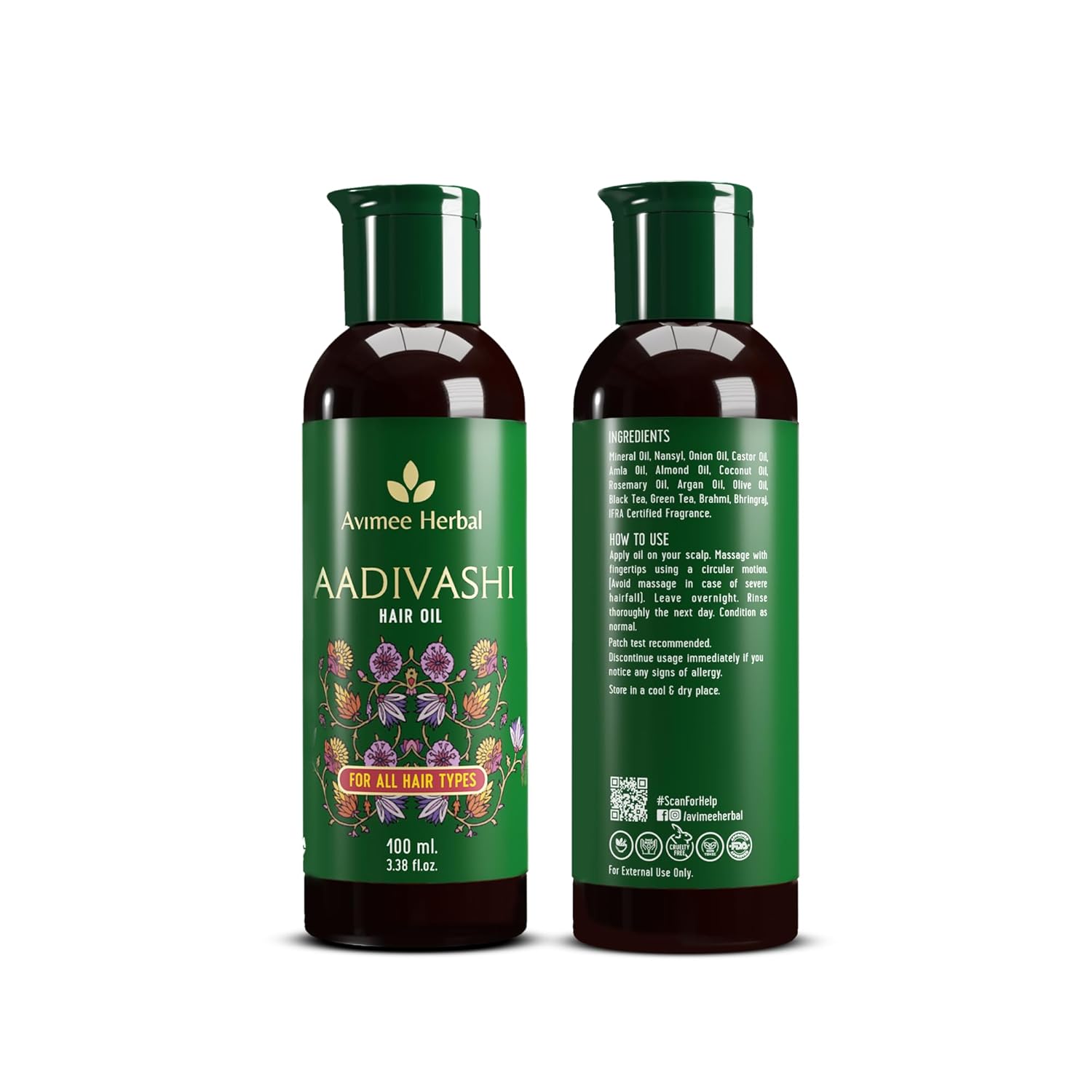 - Unlike others, Avimee Herbal Adivasi Hair Oil is 100% original and carefully made with handpicked ingredients woven into a traditional folk remedy formula. It promotes hair growth, strengthens follicles, and adds shine and softness. Ethically sourced, it soothes scalp irritation, reduces hair breakage, and moisturises dry scalp, ensuring healthy and beautiful hair.