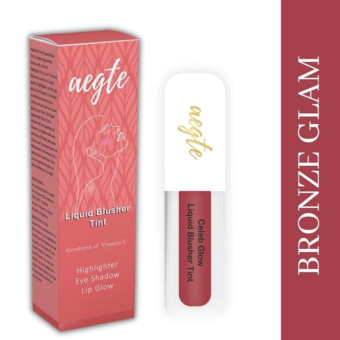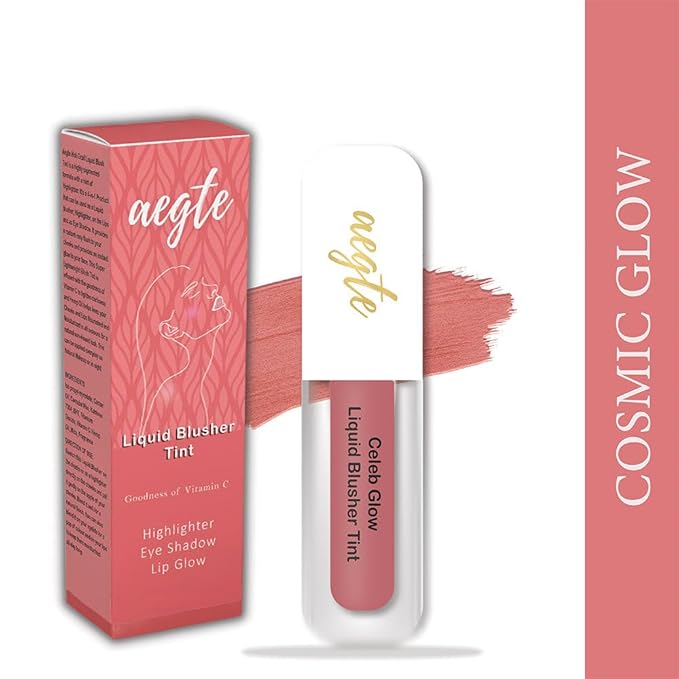- Shine like a Diva with Aegte CelebGlow Liquid Blusher Tint. Formulated with Vitamin C and Hempseed oil to impart natural glow to the skin and keep it nourished for long hours. The highly pigmented and easy to blend formula of this 4-in-1 Liquid Blusher can be used as Lip Tint, Blusher, Highlighter and Eyeshadow for a flush of colour on the face. Enliven your face with rosy cheeks and lips.