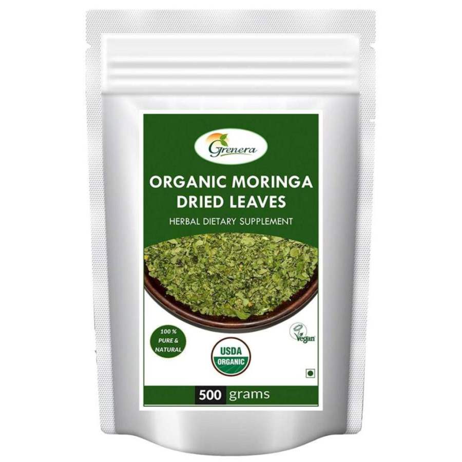 - Grenera offers the premium quality of organic moringa dry leaves. we source the organic moringa leaves from our own organic farms and process the moringa leaves in very hygienic way. all our process was monitor by the experts to ensure the quality of the product. the fresh moringa leaves are dehydrated and packed in very hygienic conditions. the moringa dried leaf pack contains the organic dried dehydrated moringa leaves and there might be a chance of small fiber sticks in the product. our product is certified organic, halal and vegan.