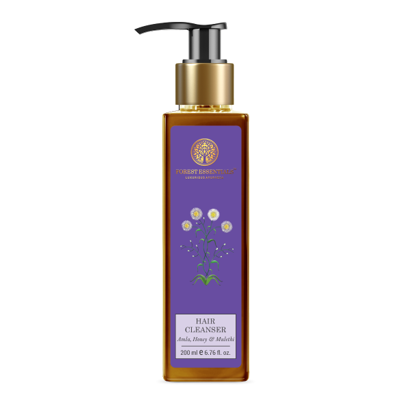 - This nutrient rich hair cleanser, suitable for normal to oily hair types, is prepared with Ayurvedic infusions of Amla, Nilini, Haritaki, Soya Protein, and pure Coconut Oil to leave hair with a natural lustre, swing and fragrance. The Forest Essentials Hair Cleanser Amla, Honey & Mulethi is free from SLS/SLES and contains a natural cleansing herb, Reetha which gently cleanses the hair while balancing its natural oils.
