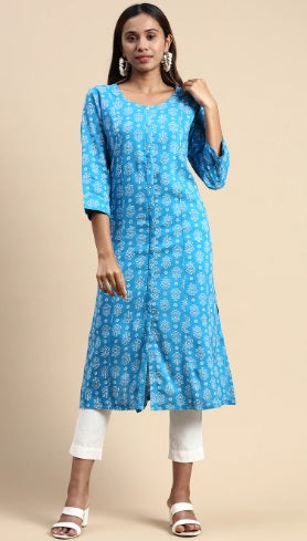 - Introducing our captivating Cotton Printed Kurti – a delightful blend of comfort, charm, and style that effortlessly captures the essence of contemporary fashion.