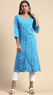 details about Ramraj Womens Cotton Flower Printed Round Neck Straight Cut Kurti - Blue