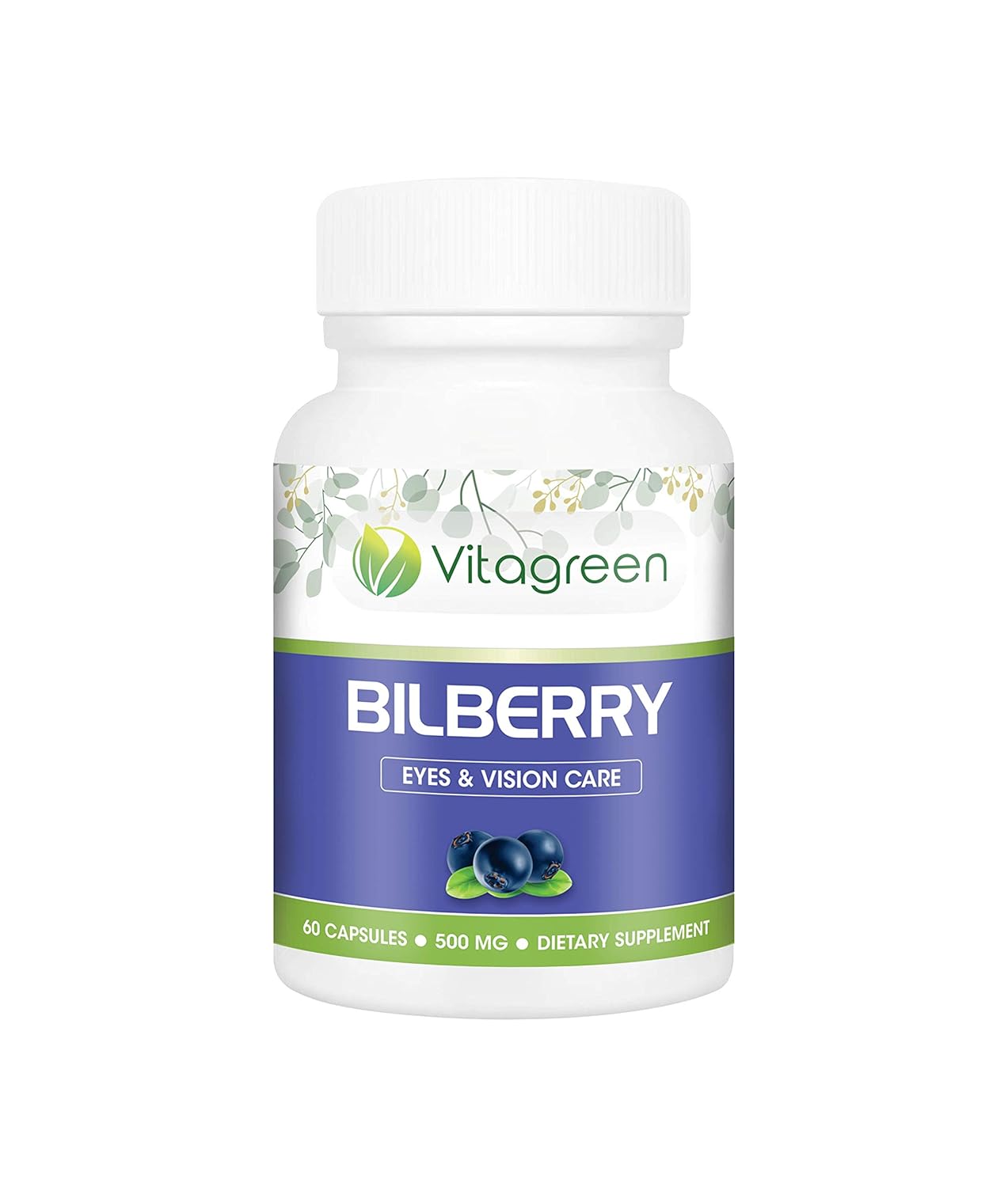 - Vitagreen Bilberry 500mg Capsule is a herbal product that provides antioxidants and maintains healthy blood sugar levels. It may improve digestion and eyesight. It supports eye and vision care and may also help in diabetes.