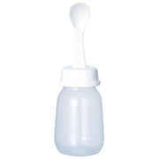 A soft squeezable bottle with spoon helps baby learn textures and experience a spoon. It is suitable for the first stage of weaning with juice, soup or soft solids. When you squeeze the bottle, the contents will flow slowly into the spoon. It allows you to feed easily and smoothly. Ideal for introducing baby to spoon feeding. Bottle can be sterilized. Cleaning brush is included.