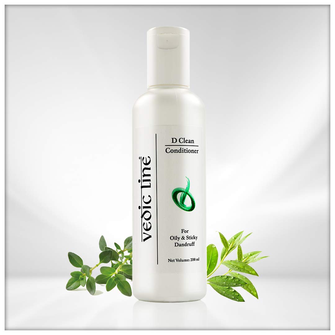 - Vedic line D Clean Conditioner for dandruff with Extracts of Thyme and Tea Tree Oil. It helps to slip dandruff flakes from hair shafts. Keeps hair healthy.