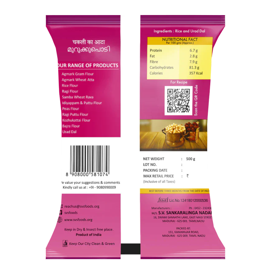 - It’s a perfect mix of rice and urad dal. We pack this deliver happiness and celebration. Festivals are absolutely incomplete without our own food ‘ murukku’. It’s a special ingredient for Murukku, seedai & Thattai.