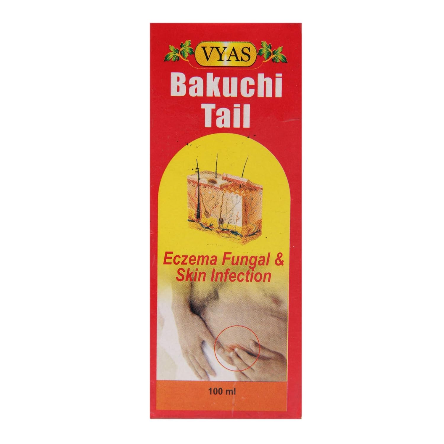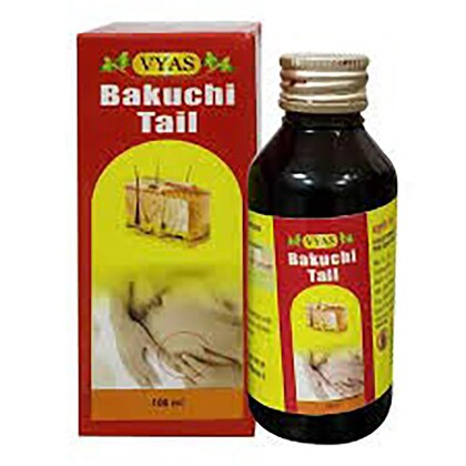- Vyas Bakuchi Tail is effective in different skin diseases and conditions. It is useful in skin diseases because it removes all toxins from the skin and revitalizes the skin. It heals alopecia. It even heals eczema, vitiligo and, psoriasis. It clears all white and red scaly patches that appear in skin conditions such as leucoderma and vitiligo.