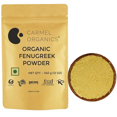 - βCarmel Organics 100% Fenugreek Powder is a purely organic product that can provide nourishment for better health and be used as a cooking condiment. It may enhance the flavour and aroma of the food it is used in. The powder is a rich source of vitamins and antioxidants that may be helpful against various infections. It may also improve digestion, strengthen bones, reduce the risk of diabetes and maintain cardiac health.