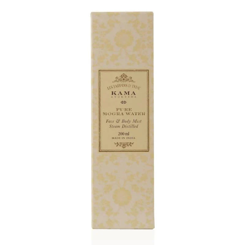 Face & Body Mist Steam distilled from hand-picked Indian Mogra (Jasmine). This pure mogra water is an ancient recipe for skin hydration, which balances dry, mature and sensitive skin. Its anti-inflammatory properties relieve stressed skin while it calms the nerves and alleviates tension to uplift the mood. It is a skin care treatment for ph balancing and also helps in reduction of fine lines and pigmentation. Mogra's sweet fragrance is clarifying and refreshing to start or finish, a long day. The steam distillation process used to create this wonderful water ensures a high level of hygiene and purity.