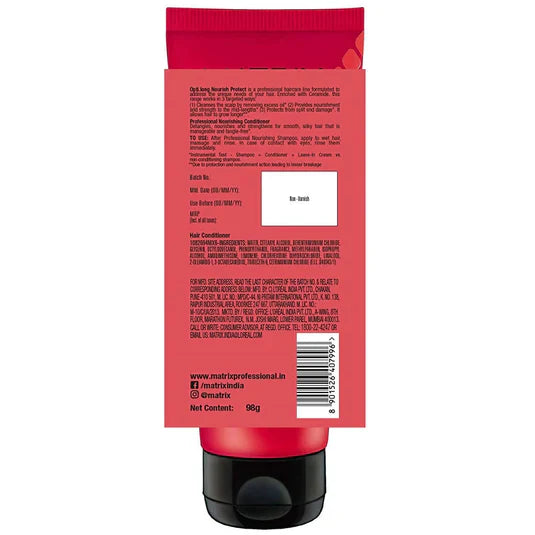 Tangled hair and split ends keeping you away from the hair of your dreams? Discover the professional solution for long and strong hair, the Matrix Opti Long Nourish Protect Conditioner. The nourishing conditioner detangles and nourishes your hair and strengthenes hair fibres. The Matrix conditioner also protects your hair from split end damage and gives you tangle-free, manageable hair.