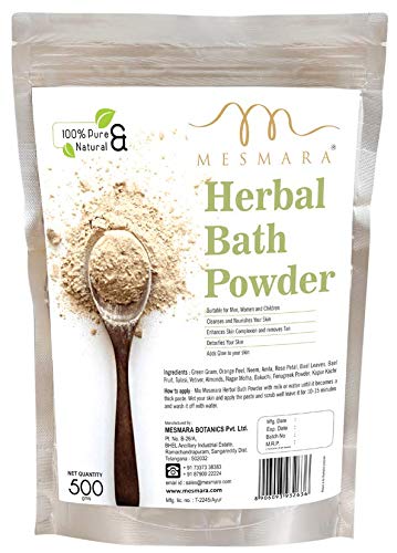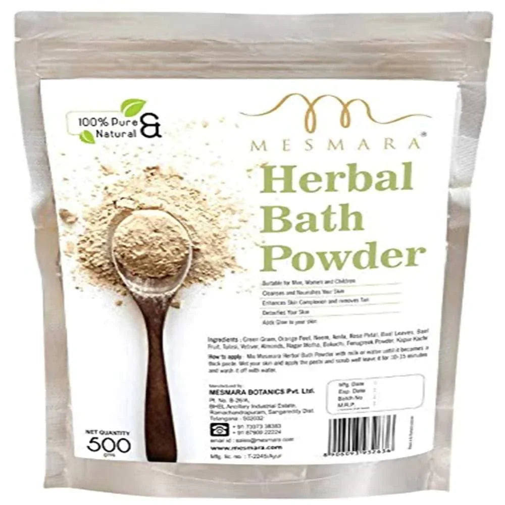 - Mesmara Herbal Bath powder is a powder and used to purify and exfoliate skin. Mesmara Herbal bath powder is a complete natural product and does not contain any artificial ingredients or chemicals. All the ingredients have medicinal and healing properties which make it an excellent alternative to bath soap. Apart from refreshing the body, it removes the tan and lightens the complexion, makes the skin smooth and silky.