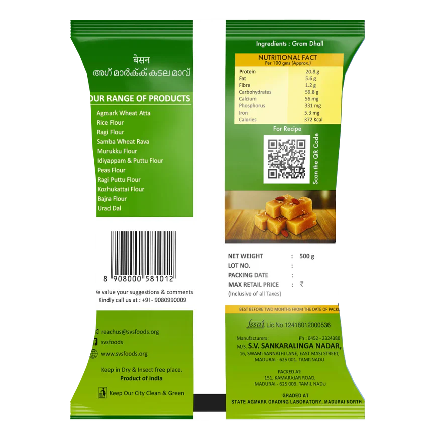 - Grinded from the best pulses which are produced from the heart of India (Madhya Pradesh). SVS is Proud for being Madurai’s first agmark certified company. This flour is majorly used in making of sweets, savouries and snacks varieties especially laddu, Mysore Pak, Bajji, Mixture, Sev etc.